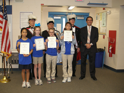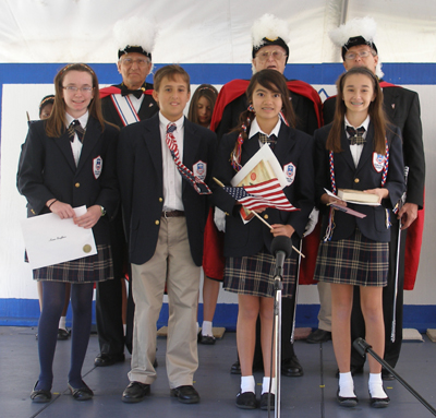 Veterans Day in the courtyard tent of Royal Palm Academy in North Naples was the scene as students and their grandparents, staff, and faculty gathered in a special patriotic ceremony honoring veterans and grandparents. Special guests included the 4th Degree Knights of Columbus from Our Lady of the Rosary Assembly #2542 located in Bonita Springs. Three members of the Color Corps of the Assembly presented awards to writers of the top five student essays for the Knights-sponsored patriotic essay contest in the 2011-2012 school year.