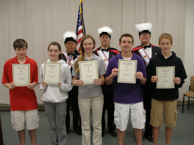 Appearing in the above photo are: Front Row Left to Right: Min Xian Lee, Jamie Harris, Nicole Bravo, Jamie Cheaw Back Row: Sir Knight James Ripley, S/K Edward Sedillo, S/K Patrick Becker, Mr. Nathan Pugh. (Photo by Three Oaks Language Arts teacher Mrs. Lisa Dolan)